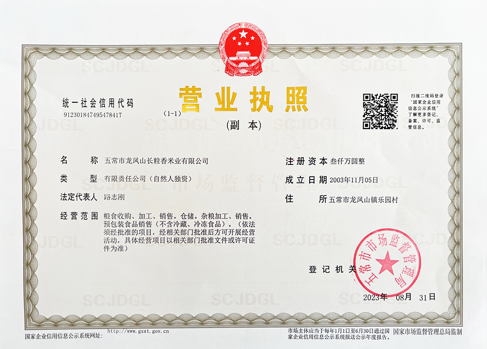五常市龍鳳山長(zhǎng)粒香米業(yè)有限公司